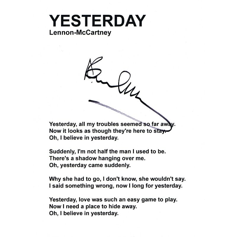 Paul McCartney's Yesterday is a classic song that has stood the test of time. Its simple yet powerful lyrics and unforgettable melody have made it a favorite of music lovers around the world. Whether you're a Beatles fan or just appreciate great music, Yesterday is a must-listen.
